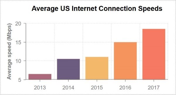 Jokes like these, which (let's admit it) aren't that far from truth, show that the Internet has become an important part of our lives. Sadly, the technology has failed to keep up with our needs, at least in the US. Here's a graph provided by Data Alliance, which shows the average Internet connection speed in our country during the last five years.
